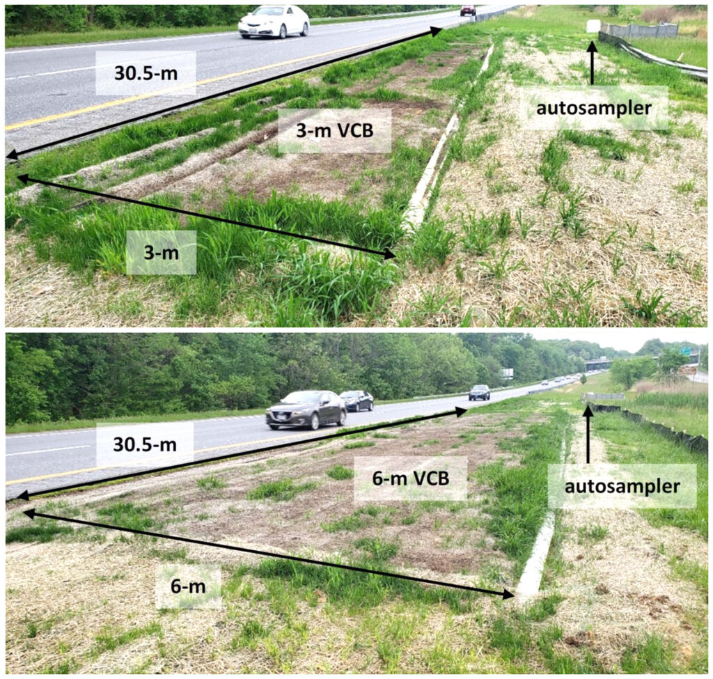 Sediment removal improved with longer flow paths through the VCBs. Particulate-bound copper and zinc were mostly removed along with sediment. However, VCB performance showed mixed results for dissolved metals. In some cases, dissolved copper concentrations increased in runoff, likely due to the copper content of the compost itself rather than incoming runoff. Greenhouse experiments also showed dissolved metal export when particulate removal was high, indicating that the behavior of the dissolved metals was influenced by the chemistry and depth of compost.